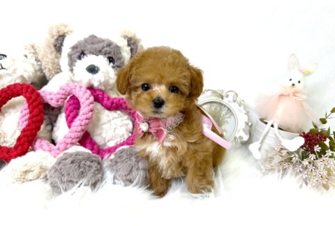 トイプードル:1739 やっぱり人気のレッドカラー♡アイラインパッチリの可愛いレッドフォーンの女の子*1739 新しいご家族さまが決まりました 生年月日:2025年11月24日 毛色:レッドフォーン(レッド) 性別:女の子